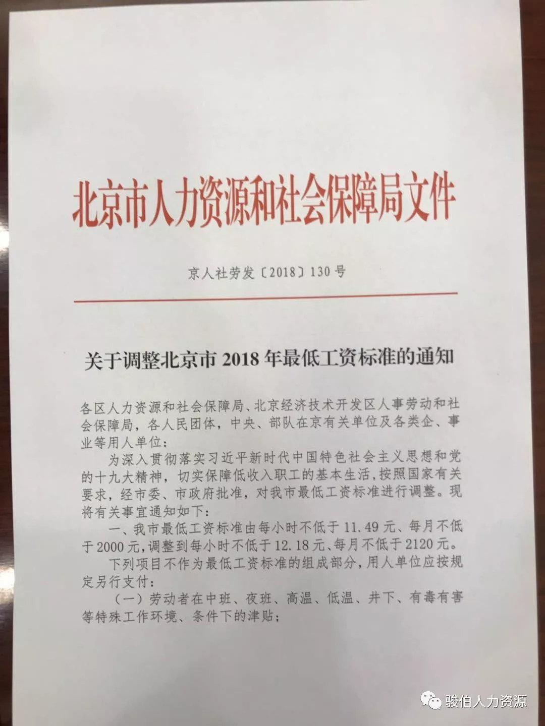 6月29日,北京市人力资源和社会保障局宣布,按照国家要求,经北京市委、市政府批准,北京市对最低工资标准进行调整,由每月2000元调整为每月2120元,增加120元。